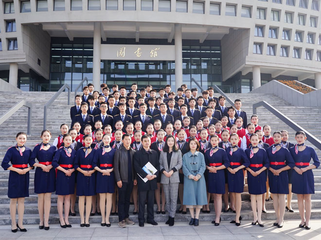 为了培养学生穿着制服的习惯、了解制服穿戴的规范、进一步塑造航空服务型人才应有的形象、增进学生对学校对行业的归属感和责任感,11月30日上午,2018秋季航空服务专业全体学生整齐列队,一场隆重的授装装仪式正在大学生活动中心举行。大会在播放生活短片的轻松氛围中进行,紧接着在雄壮的义勇军进行曲中授装仪式的大幕正式拉开,全体同学精神振奋,激情高涨。首先由礼仪老师周慧老师为同学们讲解制服规范及着装标准,同学们也从中学习到了不少知识。接下来,就开始进行最重要的授装环节,由刘金松老师、王芸芸老师率先为女生授装、由宋修建老师以及周惠老师为男生授装。